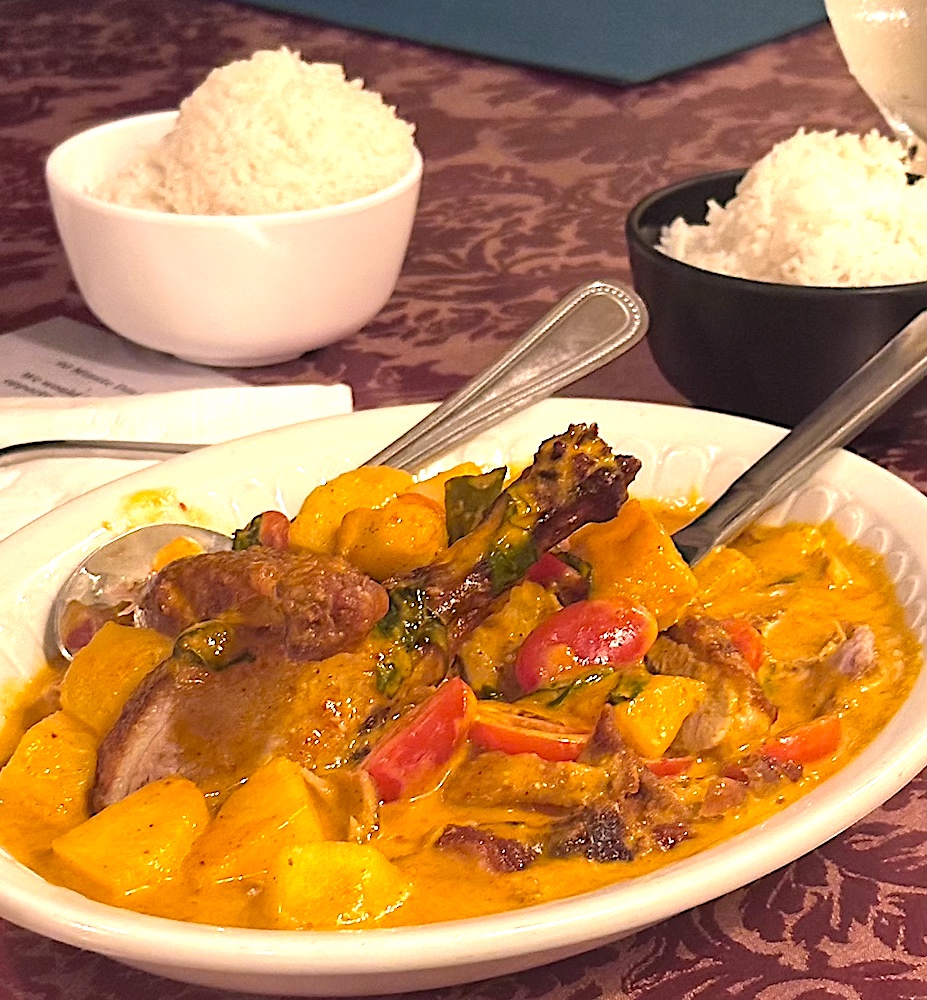 Wei says: “This is roasted duck done in fresh red curry. Very rich. You can feel the difference between that and the Penang Curry with Chicken, which is good but everyone is sweating from the level of spice”.