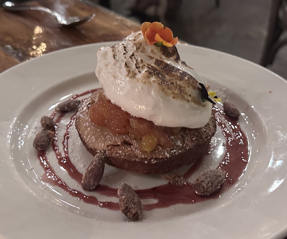 This time around, we promise each other to have just bites of the Almond Cookies Dessert and the Apple Crisp. We take the rest with us. Patsy loves the way they used fire on the meringue to go with the cookie. It’s both a good look and a good taste.