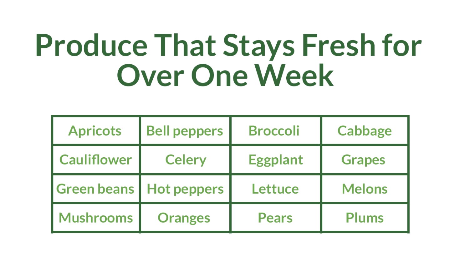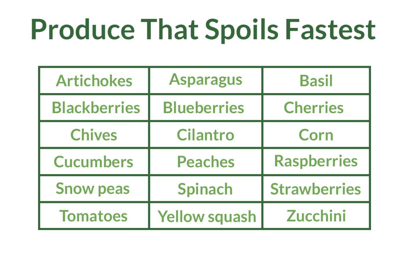 I would also like to share with you info from Foodsaver. They have charts letting you know what spoils fast, what will stay for over week and what lasts the longest.