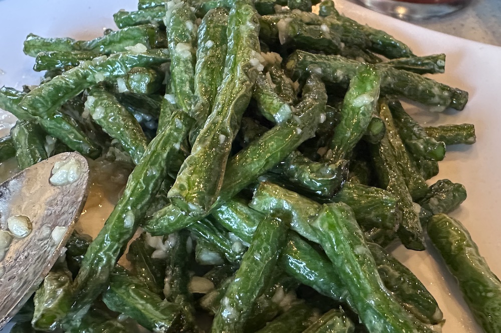 Green Beans with Garlic – Patsy says: “They’re fresh.” Fran and her husband Andy are with us for the first time and Fran says: “The beans are seasoned just perfectly with garlic and other seasonings. Phyllis says: I enjoyed the green beans. Patsy agrees. And I would say the green beans are the big winner of the day. So yummy.
